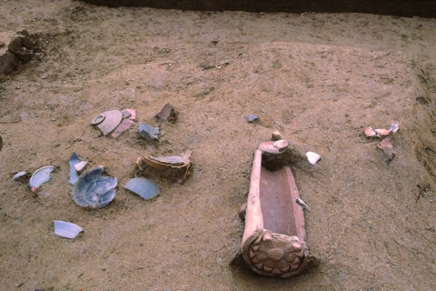 古代の特徴的な遺跡としては当時の役所である官衙関連の遺跡や寺院跡などがあります。古代の官衙関連遺跡の特徴としては、柱穴が方形を呈していることや建物跡が強い企画性を持って配置されていることなどがあげられます。出土遺物では役人の帯金具や文字がかかれた土器などが出土することもあります。高知県では南国市田村遺跡群や香南市十万遺跡など香長平野で官衙関連遺跡が多くみられます。香南市下ノ坪遺跡は物部川河口に位置する川津として機能した遺跡とみられ、県内最大規模の大型建物跡が企画的に配置されています。また、県内で唯一出土している遺物も多く、長岡京と同形の四仙騎獣鏡や佐波理製容器片、緑釉陶器の火舎など貴重なものが出土しています。